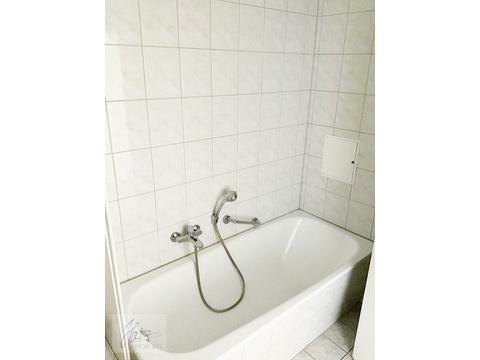 In allen Wohn- und Schlafräumen sorgt hochwertiges Laminat in heller Holzoptik für ein freundliches, warmes Ambiente, während der Flurbereich mit pflegeleichtem PVC-Belag überzeugt. Das innenliegende Badezimmer ist kompakt, bietet jedoch mit Badewanne, Dusche, WC und Waschtisch vollen Komfort auf kleinem Raum.