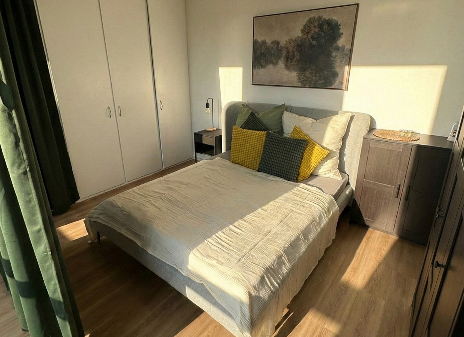 • Stilvolles Sofa, Kleiderschrank, Beleuchtungskonzept & Deko