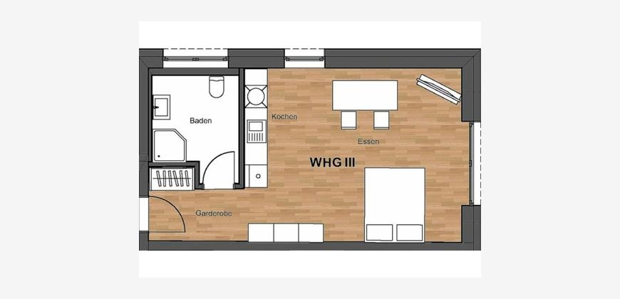 Diese Einzimmer- Wohnung verfügt über eine Wohnfläche von circa 35 m² und befindet sich im Erdgeschoss eines Mehrfamilienhauses, welches im Jahr 2022 komplett kernsaniert wurde. Die Kernsanierung erfolgte nach KFW 55 EE-Standard, wodurch der Energieverbrauch sehr gering gehalten werden kann. Die Wohnung beinhaltet ein Tageslichtbad mit bodentiefer Dusche. Der großzügige Wohn-, Ess- und Schlafbereich ist ausgestattet mit einer Einbauküche inklusive Elektrogeräte. In der Wohnung wurden bodentiefe Fenster mit elektrischen Rollläden verbaut, die für idealen Lichteinfall sorgen. Des Weiteren ist die Wohnung mit einer kontrollierten Be- und Entlüftungsanlage ausgestattet. In der Wohnung sind zudem überall LED- Einbaustrahler verbaut. Abgerundet wird diese Wohnung über ein eigenes, abschließbares Kellerabteil und einen Waschmaschinenstellplatz