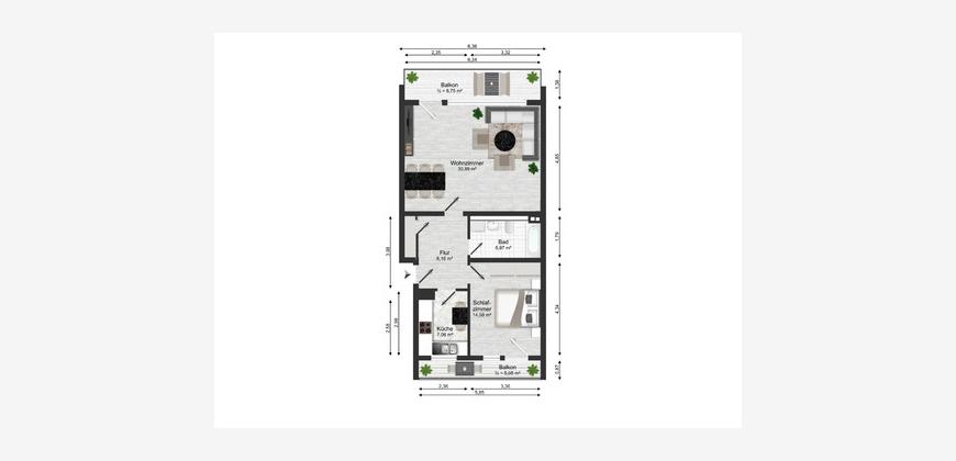 - Zwei großzügige Balkone mit Ost- und Westausrichtung