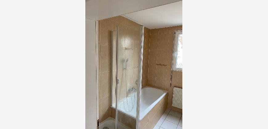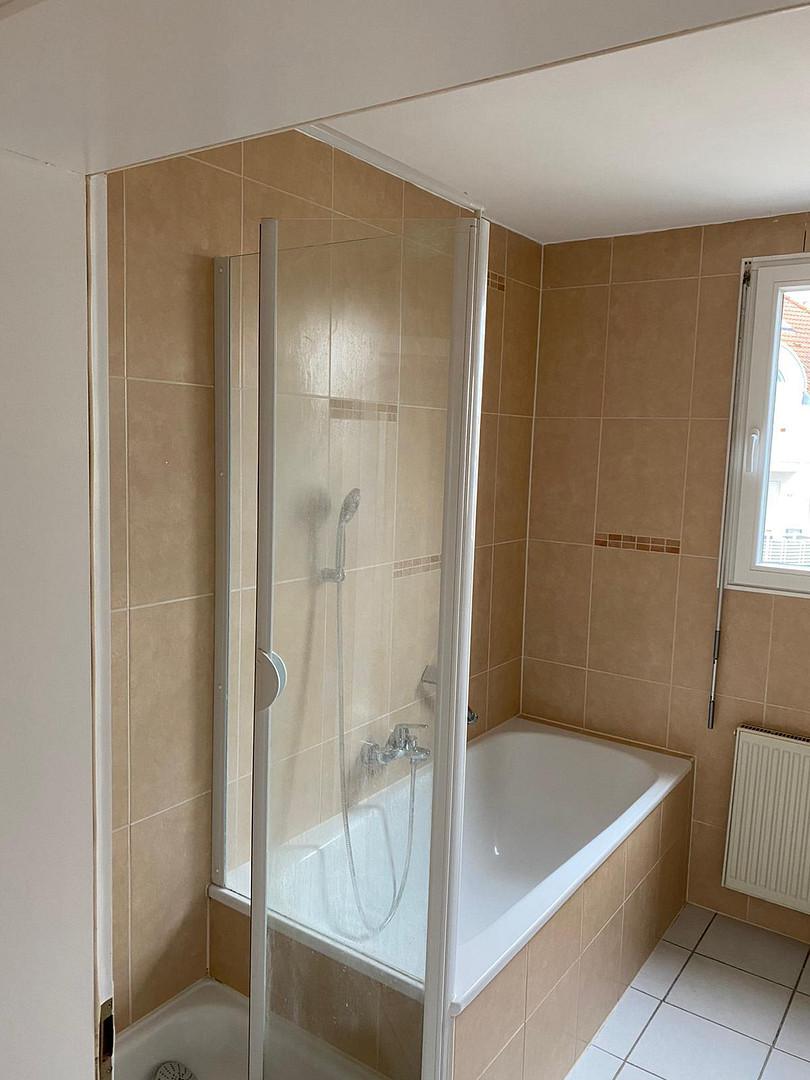 Das Badezimmer ist praktisch gestaltet und auf die Bedürfnisse einer Familie abgestimmt. Die klare Raumaufteilung sorgt auch in den Morgenstunden für einen reibungslosen Ablauf.