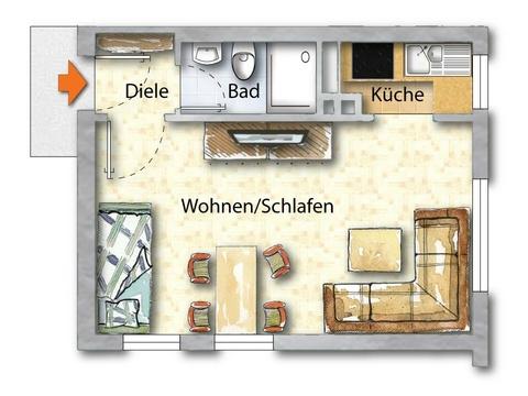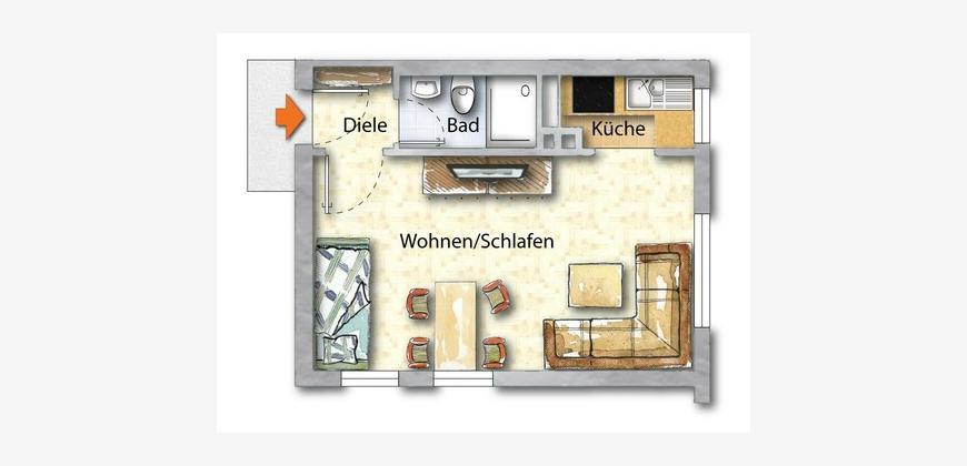 Dieses voll möblierte stilvolle City-Apartment in der 3. Etage (ohne Fahrstuhl) überzeugt durch seine helle, freundliche Atmosphäre sowie eine hochwertige und moderne Ausstattung.