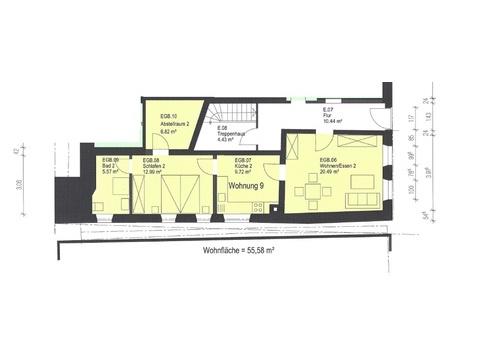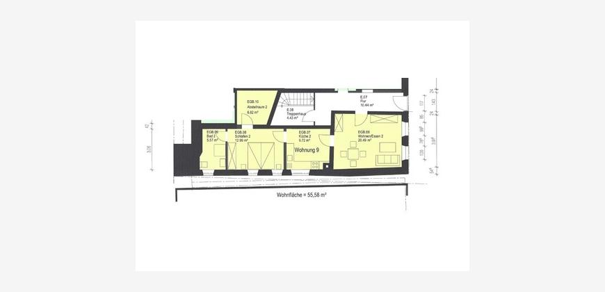 AusstattungWohn-/ Esszimmer, Küche, 1 Schlafzimmer, Bad mit Dusche und WC, Abstellraum