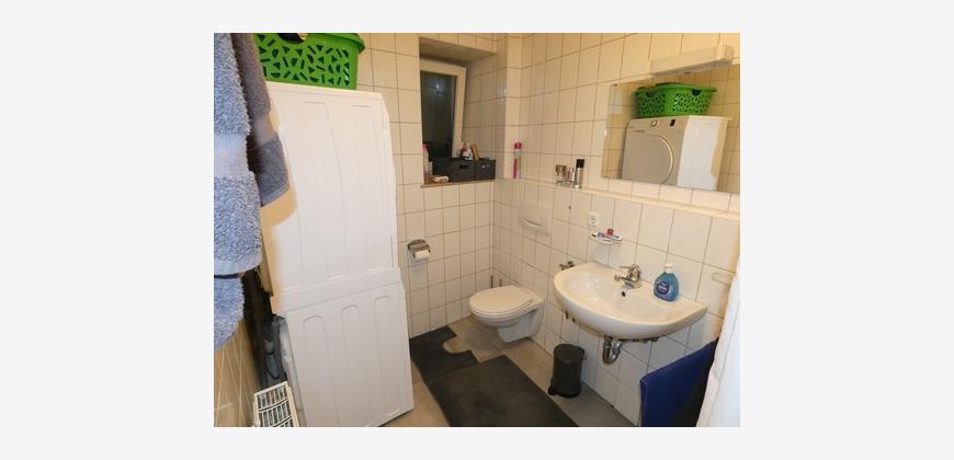 Über das helle Wohn-/ Esszimmer gelangt man durch die Küche ins Schlafzimmer, und von dort folgt das Bad mit Dusche, WC und Waschmaschinenanschluss ( ohne Fenster ).