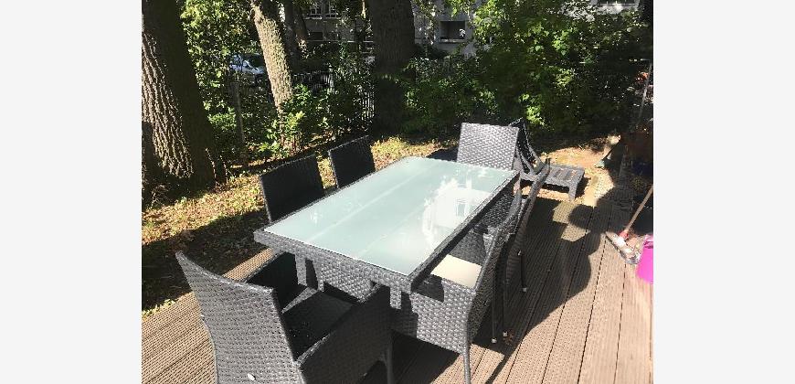 In einer der besten Wohnlagen Frankfurts liegt diese 2018 kernsanierte 3-Zimmer-Wohnung auf einem großen parkartigen Grundstück mit altem Baumbestand.