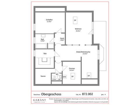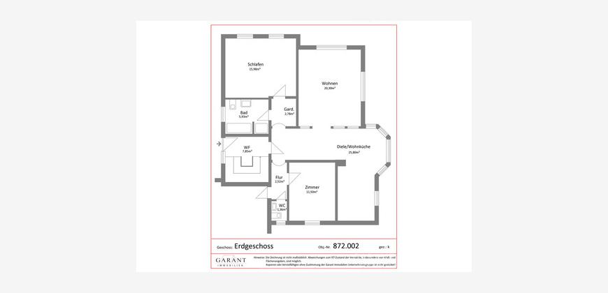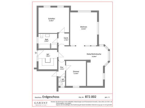 Hiermit wird festgehalten, dass die Rolle des Immobilienmaklers der GARANT im Rahmen des Verkaufsprozesses dieser Immobilie ausschließlich auf die Vermittlung zwischen dem Eigentümer/Verkäufer und potenziellen Käufern beschränkt ist. Zu keinem Zeitpunkt wurden durch den Immobilienmakler steuerliche oder rechtliche Beratungen bezüglich des Verkaufs der Immobilie oder damit verbundener Vorgänge angeboten, durchgeführt oder impliziert. Potenzielle Käufer werden aufgefordert, alle relevanten Aspekte der Immobilie durch eigene Prüfungen oder durch Beauftragung geeigneter Fachberater zu verifizieren, um sicherzustellen, dass alle Informationen ihren Anforderungen und Erwartungen entsprechen.
