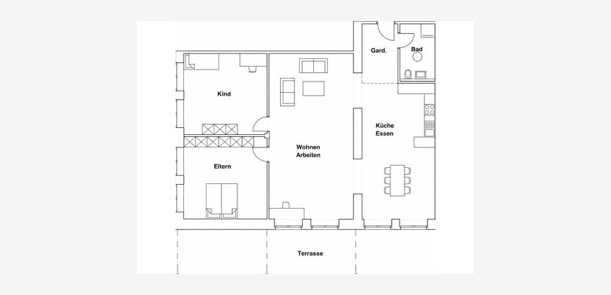 Ein Highlight ist die großzügige Terrasse, ideal zum Entspannen oder für gesellige Abende. Ein Stellplatz gehört ebenfalls zur Wohnung und rundet das Angebot ab.
