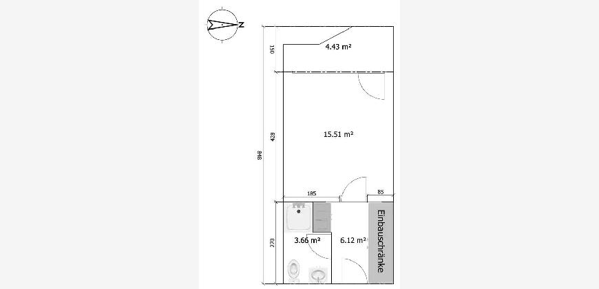 Pantry-Küche ohne Ofen, der aktuelle Mieter hat sich eine Mikrowelle mit Backfunktion zugelegt.