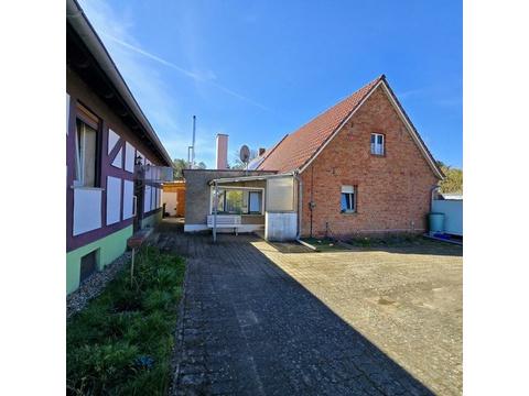 Zwei der drei Einliegerwohnungen befinden sich aktuell in einem sanierungsbedürftigen Zustand und bieten großes Potenzial. Jede Wohnung hat eine Größe von etwa 65 m² und ist momentan eher funktional als modern ausgestattet. Die erste Wohnung befindet sich direkt im Haupthaus und verfügt über einen großzügigen Wohnbereich, ein Schlafzimmer, eine Küche sowie ein Badezimmer.