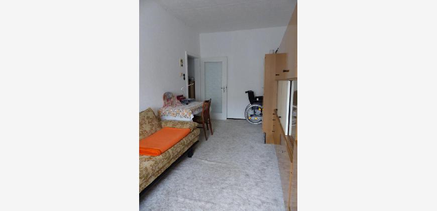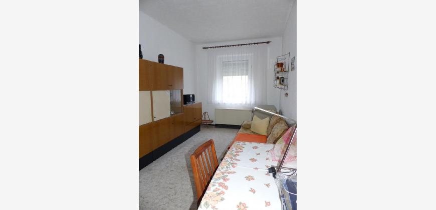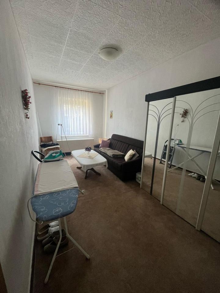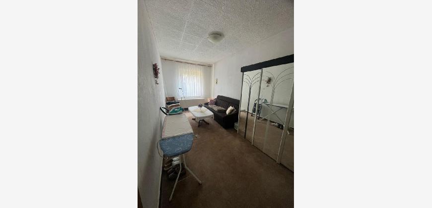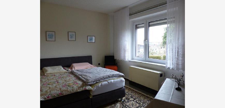 Die Immobilie betritt man über den gemeinsamen Flur. Am Ende geht es dann in die jeweilige Wohnung. Die linke Wohnung teilt sich auf in: links Küche, folgend das Bad, am Ende des Wohnungsflures ein Kinder-/Gästezimmer. Auf der rechten Seite befinden sich das große Schlafzimmer und das große Wohnzimmer, Eine kleine innenliegende Kammer zum Anstellen von Utensilien runden das Bild ab.