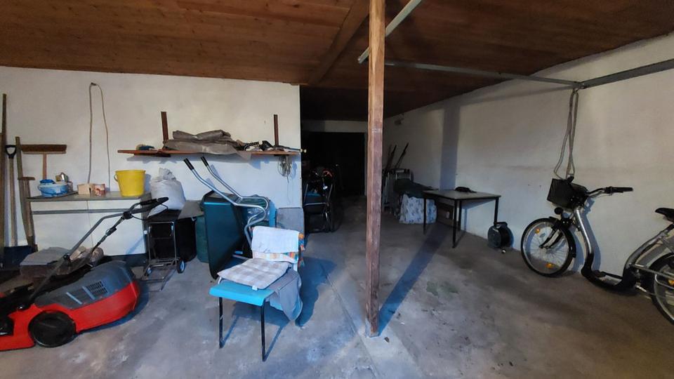 Auf einem Extragrundstück, welches durch eine Weg vom Hauptgrundstück getrennt und nur wenige Schritte entfernt liegt, befindet sich ein großes Nebengebäude, welche eine Garage, einen Hühnerstall und zwei weitere Räume beherbergt. Ideal für Hobby und zum Unterbringe von Utensilien.