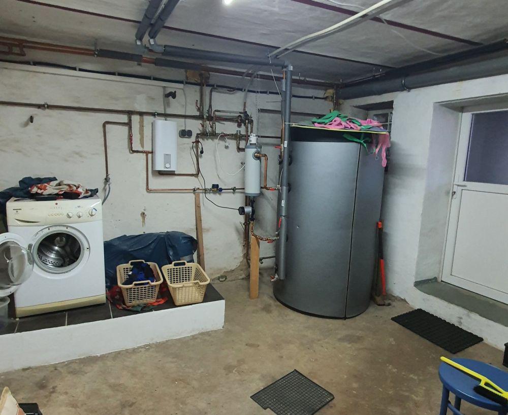 Geheizt wird die voll unterkellerte Immobilie mittels einer Wärmepumpe, der Energieträger ist Strom.