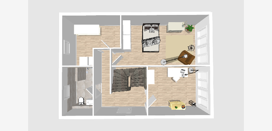 Zusätzlicher Zugang über das Treppenhaus auch in den Souterrain-Bereich der Wohnung, sodass auch der untere Wohnbereich autark genutzt werden könnte.