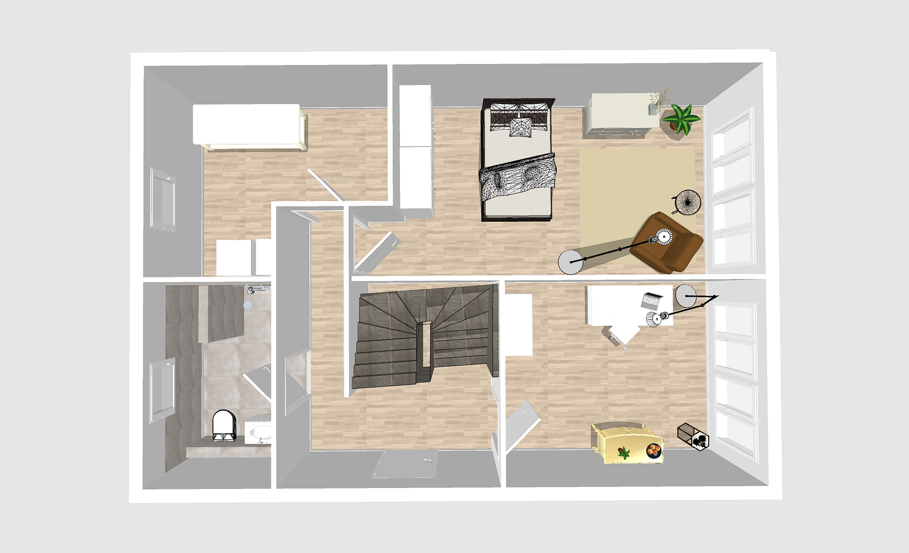 von Wohnung und Büro durch den zusätzlichen 2. Zugang über das öffentliche Treppenhaus