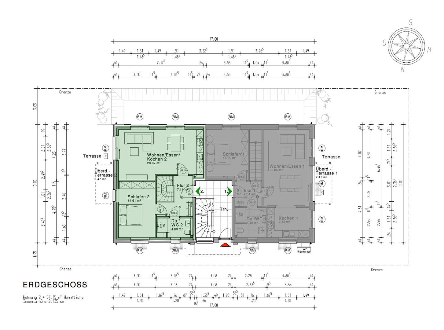 Direkter Zugang zur eigenen Terrasse und eigenem Gartenbereich mit 150qm Außenfläche.