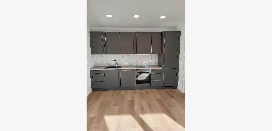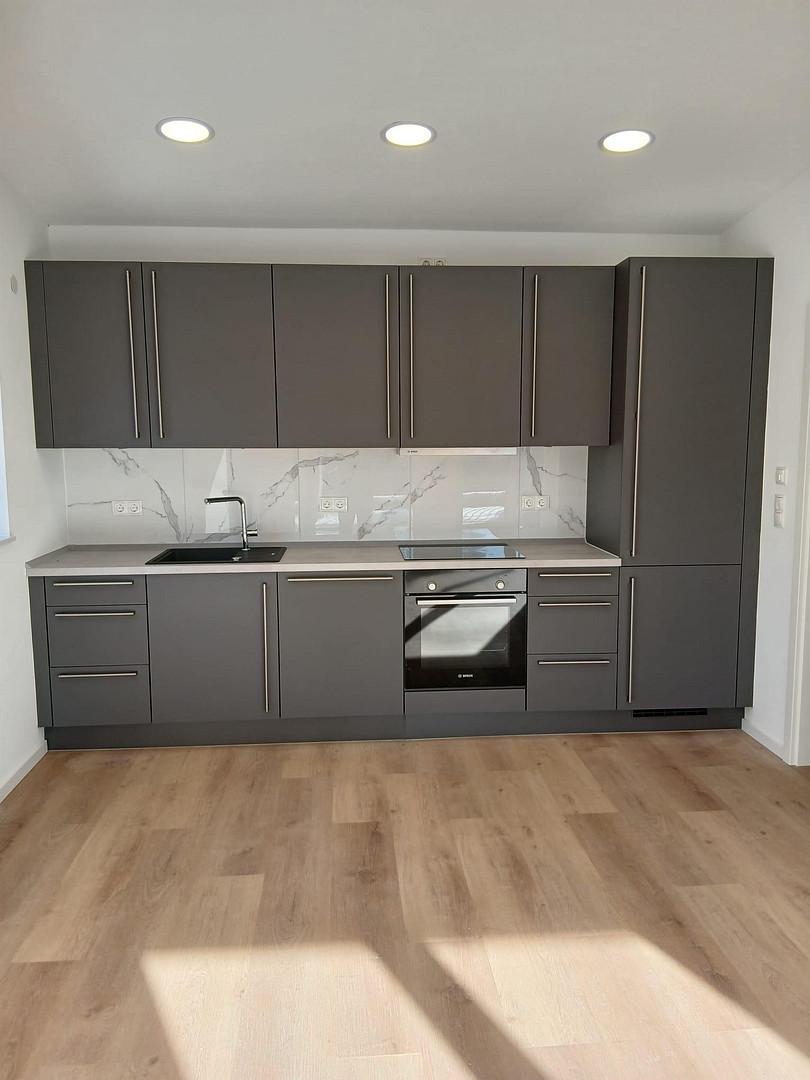 -Der Wohn- und Essbereich mit Küche und einer vorderen Deckenhöhe von 3,3 m verfügt über Einbauspots