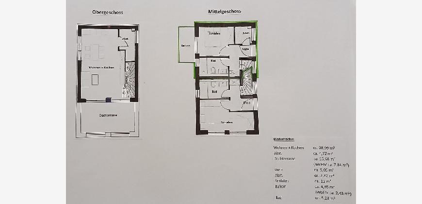 -Beleuchtung vorhanden im Flur, im Abstellraum, im Bad und dem Treppenaufgang