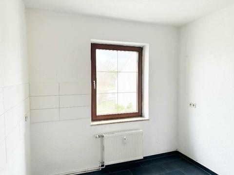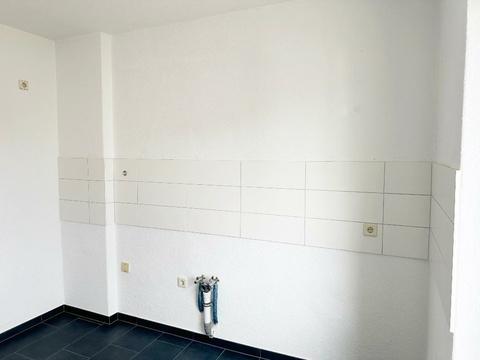 Rechts vom Flur gelangen Sie in die Küche mit 8,55 m², gefliest und hell. Sie bietet genügend Platz für Ihre Kücheneinrichtung. Optional kann eine Einbauküche bereitgestellt werden, die für 30 € monatlich zusätzlich genutzt werden kann. Ein Fenster sorgt für Tageslicht und Belüftung, die zentrale Warmwasserversorgung ist vorhanden.