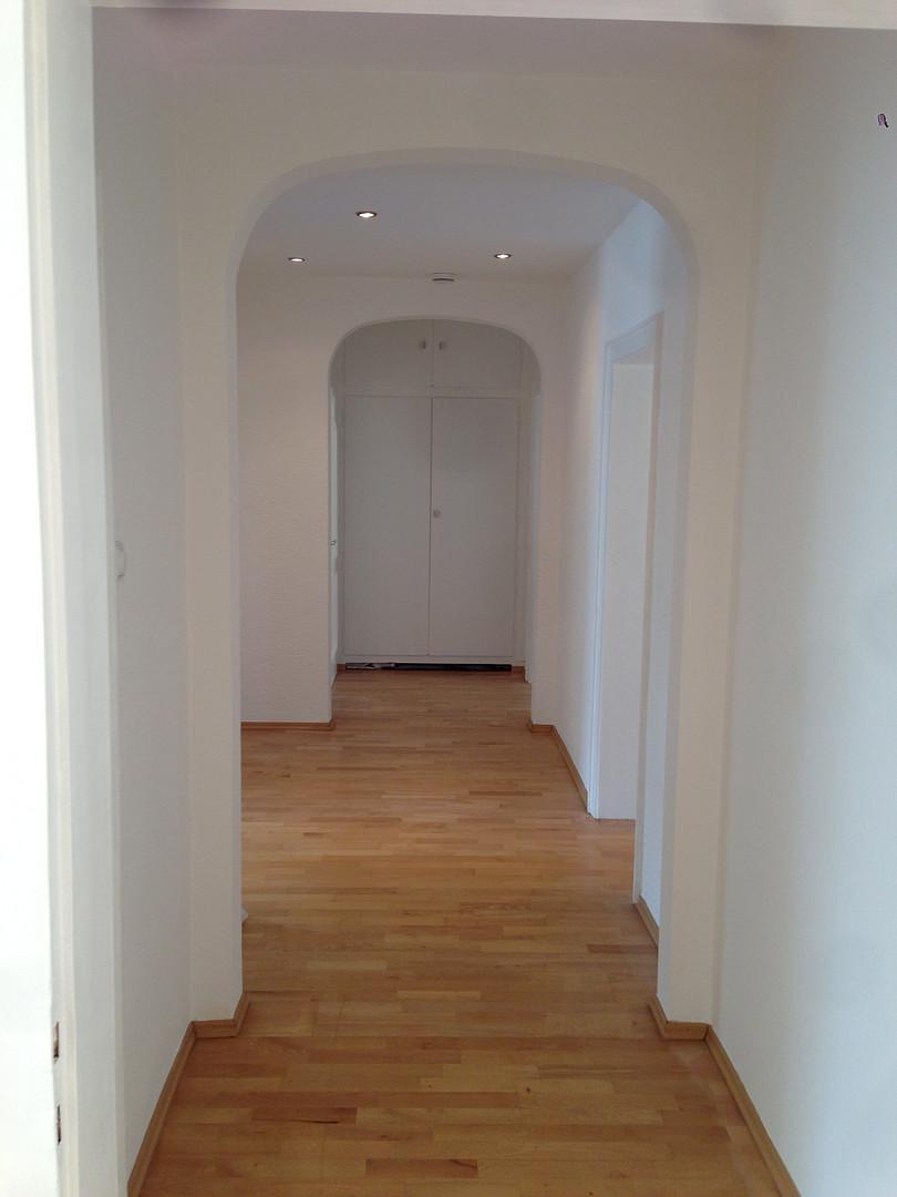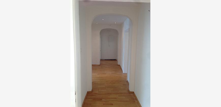 Grosszügige Wohnung mit schöner Aufteilung - durch eine Glas-/Holzschiebetür sind Ess- und Wohnzimmer (je 20 qm) miteinander verbunden. Hochwertiges Parkett in Diele, Ess- und Wohnzimmer. Hochwertiger Fliessenboden in Küche. Raumhöhe ca. 2,83 m, eingebauter Wandschrank in Diele, auch als Garderobe nutzbar, Vorratsraum in Küche, zusätzliche Nutzfläche im separaten Kellerraum, Balkon zum Garten.