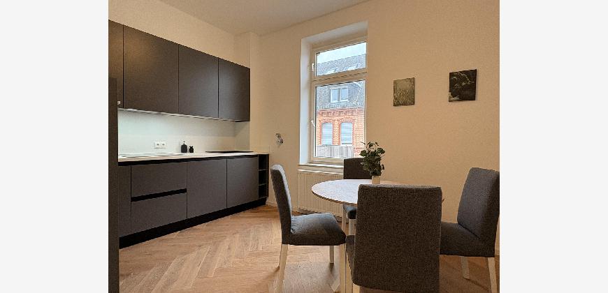 •Moderne Einbauküche mit hochwertigen Markengeräten (inkl. Herd, Backofen, Kühlschrank, teils Spülmaschine)