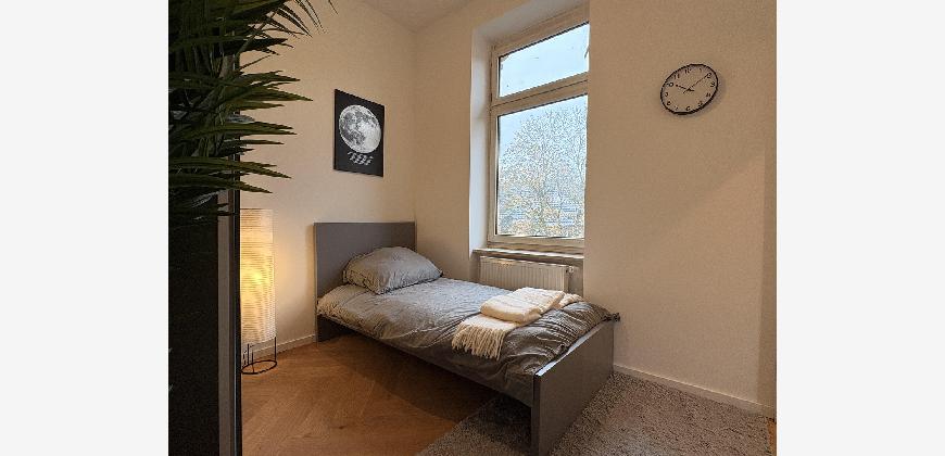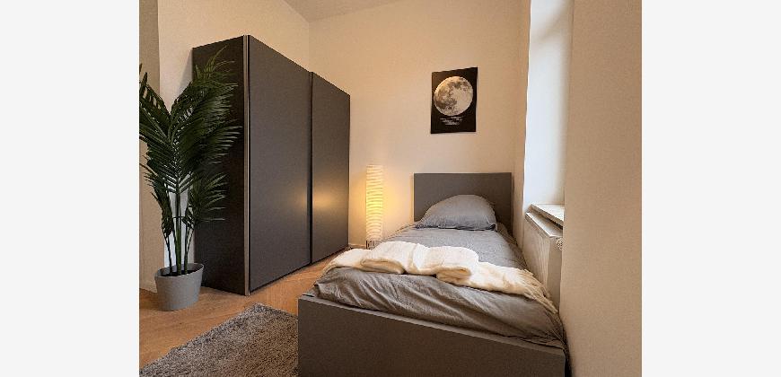 •Jedes Zimmer abschließbar und teilmöbliert (je nach Ausstattung: Bett, Schrank, Tisch, Stuhl)