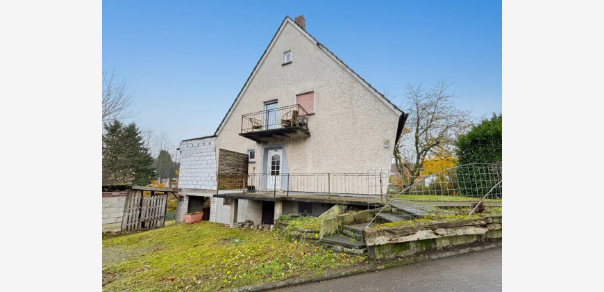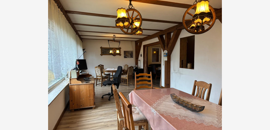 Die Immobilie wurde ca. 1962 in Massivbauweise auf einem ca. 2.402 m² großen Grundstück errichtet und bietet vielseitige Nutzungsmöglichkeiten. Das Zweifamilienhaus verfügt über eine gut durchdachte Raumaufteilung mit einer Wohnfläche von ca. 172 m², verteilt auf das Erd- und Dachgeschoss mit insgesamt sechs Zimmern. Im Erdgeschoss befinden sich ein Bad, ein großzügiges Wohnzimmer, ein Esszimmer mit Zugang zur Terrasse sowie zum Garten, eine Küche und ein weiterer großzügiger Raum. Das Obergeschoss umfasst drei Zimmer, einen Balkon, eine Küche sowie ein Badezimmer. Das Kellergeschoss bietet Ihnen zusätzlich vier Kellerräume sowie einen direkten Zugang zum Garten. Der pflegeleichte Garten lädt zum Entspannen und Verweilen ein. Ebenfalls steht Ihnen eine große Garage zu Verfügung. Das Objekt befindet sich in einem renovierungsbedürftigen Zustand, bietet jedoch erhebliches Potenzial zur individuellen Gestaltung und Wertsteigerung.