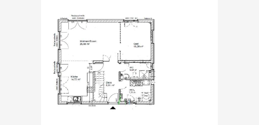 - umfangreiche Elektroausstattung (z.B. 7 Netzwerkdosen, 4 Außensteckdosen, 4 Außenlampen)