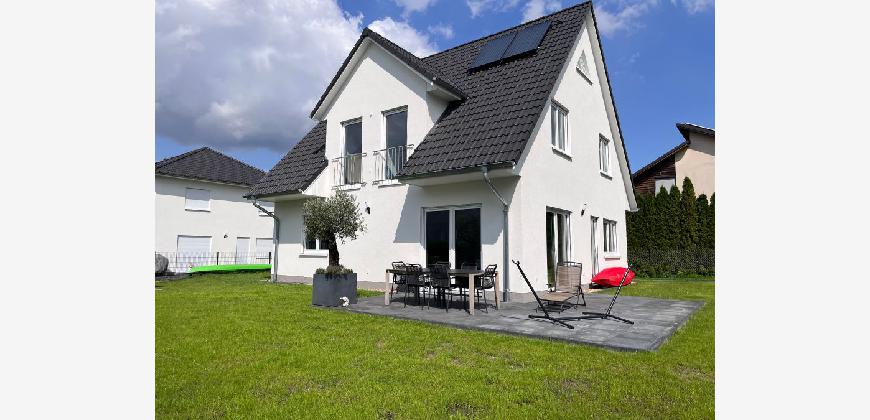 Das massive Einfamilienhaus nach KfW-Effizienzhausstandard 55 wurde 2023 neu errichtet.