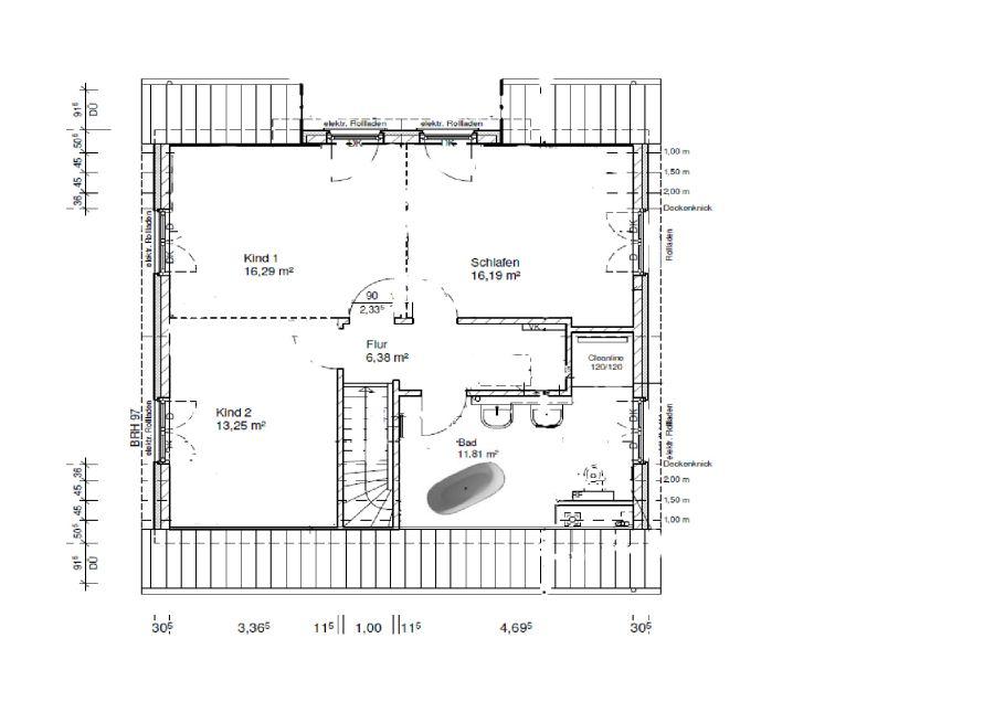 - 2 Bäder mit zwei großen bodengleichen Duschen (EG: 1,0m*0,9m, OG 1,20m*1,20m) und Fenstern