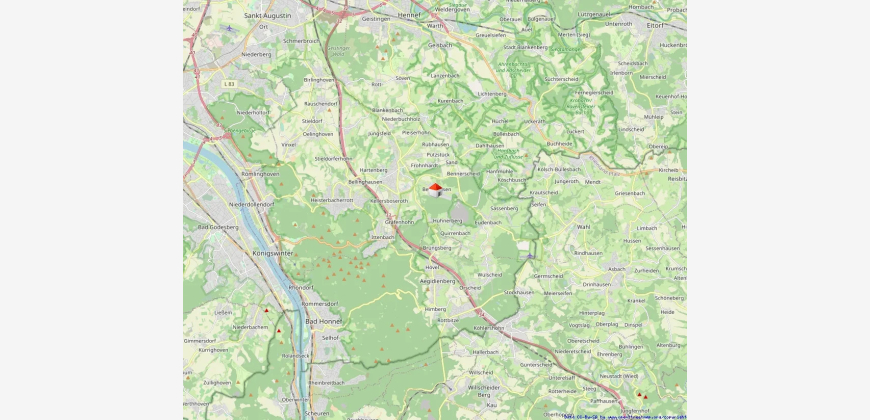 Die Wohnung befindet sich in 53639 Königswinter im idyllischen Ortsteil Berghausen, in einer besonders ruhigen und naturnahen Höhenlage oberhalb des beliebten Ortsteils Oberpleis. Die Umgebung ist geprägt von Wiesen, sanften Hügeln und einem herrlichen Blick in Richtung des Siebengebirge sowie zum markanten Oelberg.