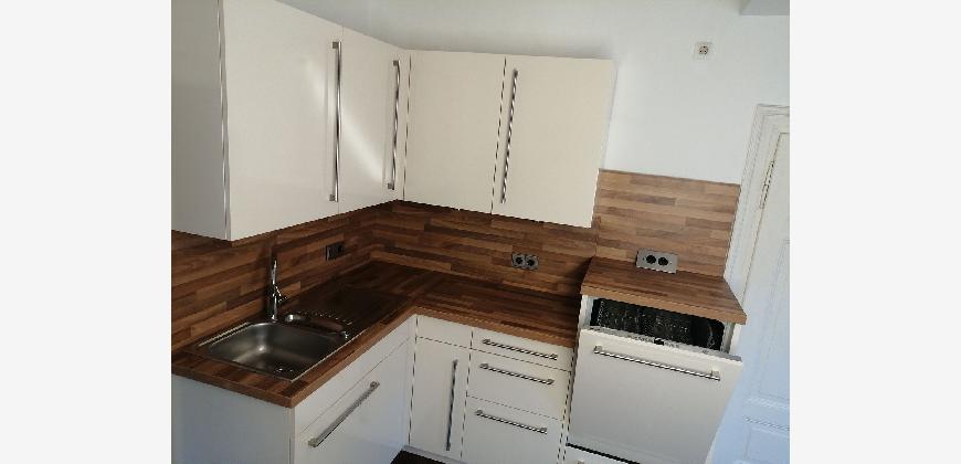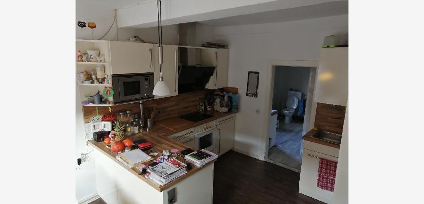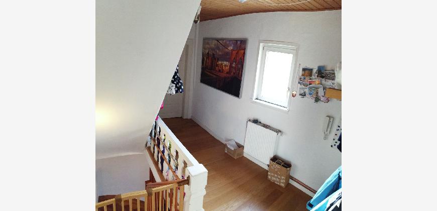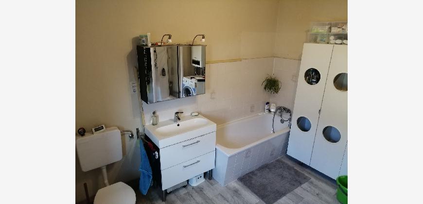 - hochwertiges Eicheparkett in den Wohnräumen (Laminat in der Küche, PVC im Bad).