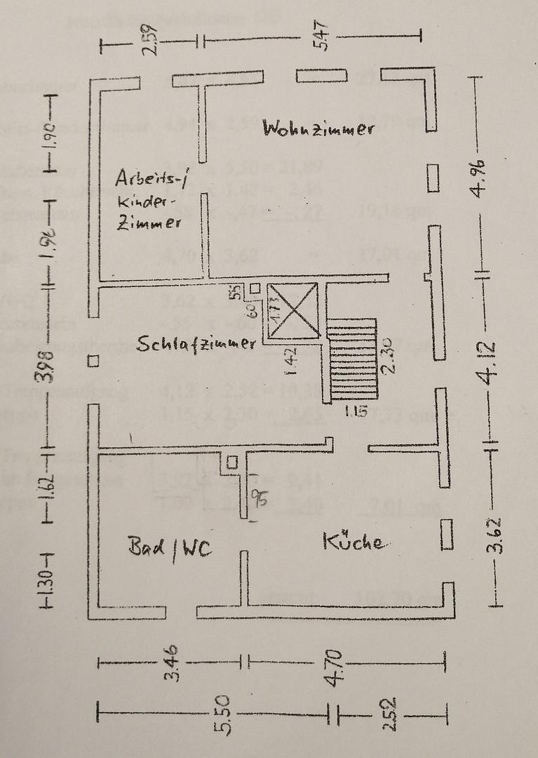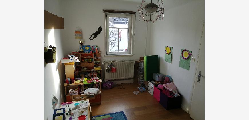 - das kleinste der drei Zimmer (Arbeit oder Kind) ist durch das Wohnzimmer erreichbar (siehe Grundriss).