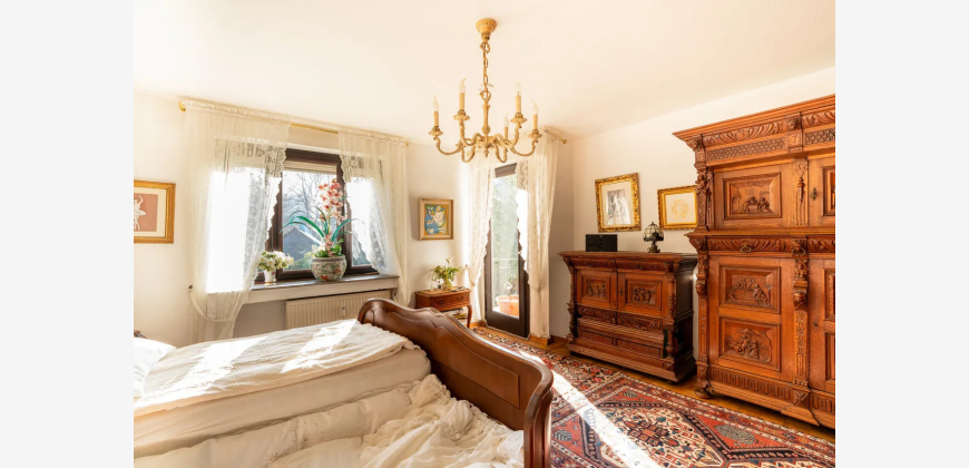 Das Herzstück der Wohnung bildet der Wohn- und Essbereich, der durch große Fensterflächen lichtdurchflutet ist. Von hier aus gelangt man auf den Balkon, der ebenso vom Schlafzimmer aus erreichbar ist und einen herrlichen Blick in den Garten sowie in den angrenzenden Wald eröffnet. Das ruhig gelegene Schlafzimmer bietet viel Platz für individuelle Einrichtungsideen und wird durch eine direkt angrenzende Ankleide ideal ergänzt. Alternativ könnte die Ankleide auch als Kinder oder Arbeitszimmer genutzt werden. Erdgeschoss und Obergeschoss sind identisch geschnitten, sodass jede Wohneinheit den gleichen Wohnkomfort bietet. Die Fenster des Obergeschosses wurden vor einigen Jahren erneuert. Außerdem ist das Obergeschoss aktuell vermietet.