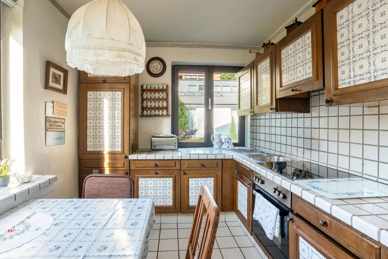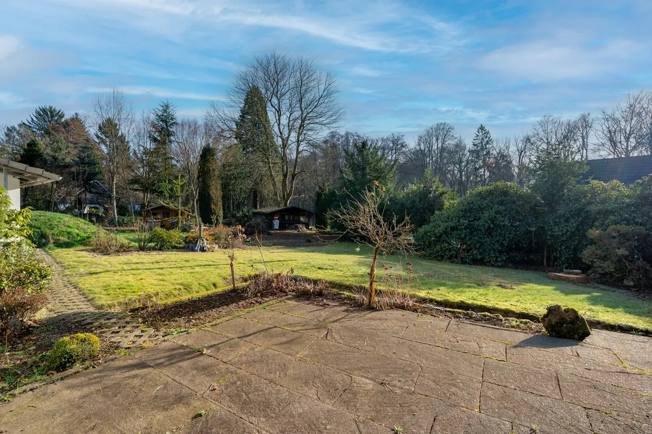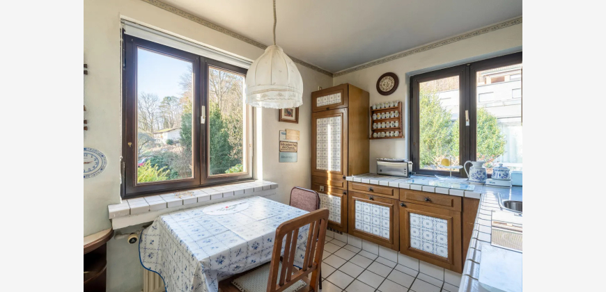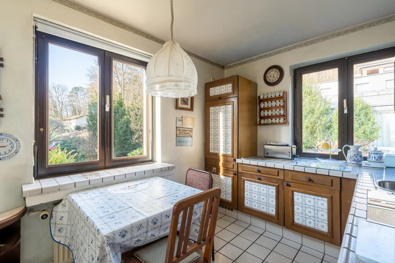 Ein weiteres Highlight ist das Gartengeschoss in Hanglage, welches neben klassischen Abstell- und Nutzräumen auch einen Waschkeller sowie wohnlich ausgebaute großzügige Gesellschaftsräume mit eigener Küche und Kamin umfasst. Von dort besteht direkter Zugang zur Terrasse und in den Garten, wodurch sich dieser Bereich hervorragend für gesellige Abende, Feiern oder als Hobby- und Freizeitbereich eignet. Die Immobilie befindet sich in renovierungsbedürftigen Zustand, der Käufern die Möglichkeit bietet, durch gestalterische und technische Maßnahmen ihre eigenen Wohnvorstellungen zu verwirklichen und das Haus individuell zu modernisieren. Die solide Bausubstanz, der attraktive Grundriss und die naturnahe Lage machen dieses Objekt zu einer Immobilie mit besonderem Potenzial.