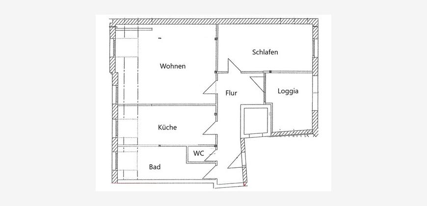 Auf ca. 93 m² Wohnfläche erwarten Sie ein großzügiges, helles Wohnzimmer, ein ruhiges Schlafzimmer, eine separate Küche sowie ein Tageslichtbad mit Badewanne und Waschmaschinenanschluss. Ein separates WC ergänzt das Raumangebot. Die Loggia zum ruhigen Innenhof bietet zusätzlichen Raum zur Entspannung.