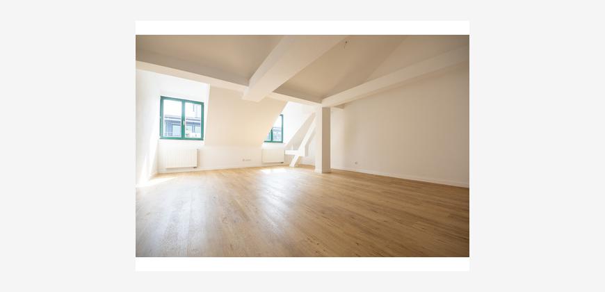 Die frisch renovierte Dachgeschosswohnung befindet sich in einem denkmalgeschützten Gebäude aus dem Jahr 1910 und verbindet historischen Charakter mit zeitgemäßem Wohnkomfort.