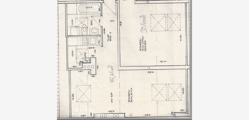 Diese Wohnung bietet alles für den sofortigen Start: Eine hochwertige Einbauküche und eine elegante Leder-Sitzgarnitur im Wohnbereich sorgen für ein exklusives Ambiente. Das Vollbad ist funktional ausgestattet und verfügt über eine eigene Waschmaschine. Dank der modernen Gas-Etagenheizung behalten Sie die volle Kontrolle über Ihre Heizkosten. Heizung: Gas-Warmwasser-Etagenheizung (Abrechnung direkt über Versorger).