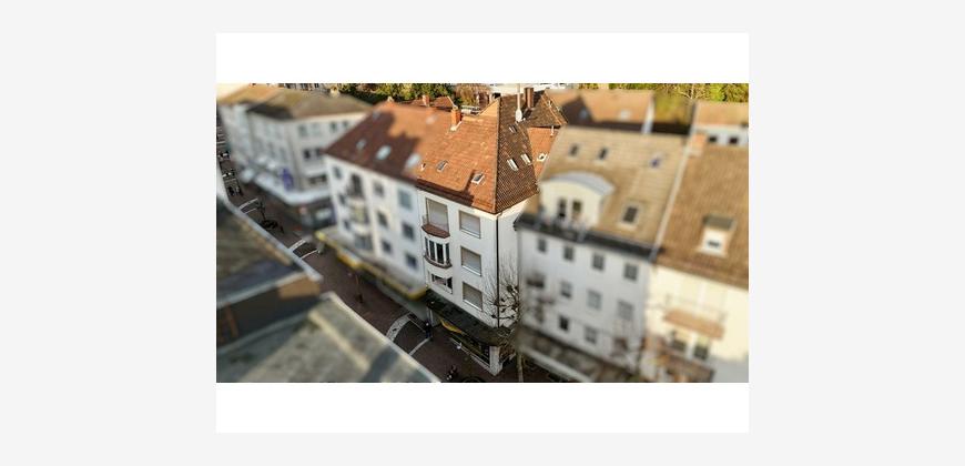 Das Wohn- und Geschäftshaus liegt mitten in der Innenstadt von Pirmasens, in einer der wichtigsten Straßen der Stadt, die größtenteils als Fußgängerzone gestaltet ist. Die Straße ist von zahlreichen Geschäften, Dienstleistern, Cafés und Restaurants geprägt, was für viel Leben und eine hohe Frequentierung sorgt. Die Umgebung ist gut an den öffentlichen Nahverkehr angebunden,