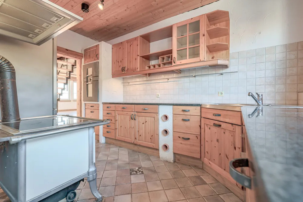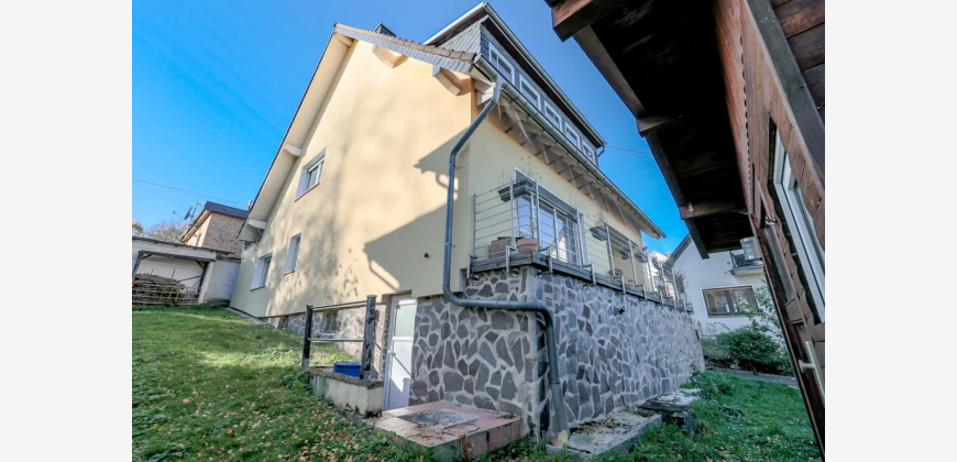 Die Immobilie wurde ursprünglich im Jahr 1970 errichtet und steht auf einem ca. 422 m² großen Grundstück. Die offizielle Wohnfläche beträgt 123,81 m² und verteilt sich aktuell auf zwei Wohneinheiten mit insgesamt sechs Zimmern. Zusätzlich wurde die Dachspitze in ausgebaut und bietet zwei weitere Zimmer, welche jedoch nicht teil der Baugenehmigung sind und nicht in der offiziellen Wohnflächenberechnung berücksichtigt sind. Ergänzt wird das Raumangebot durch praktische Nutzflächen im Kellergeschoss.