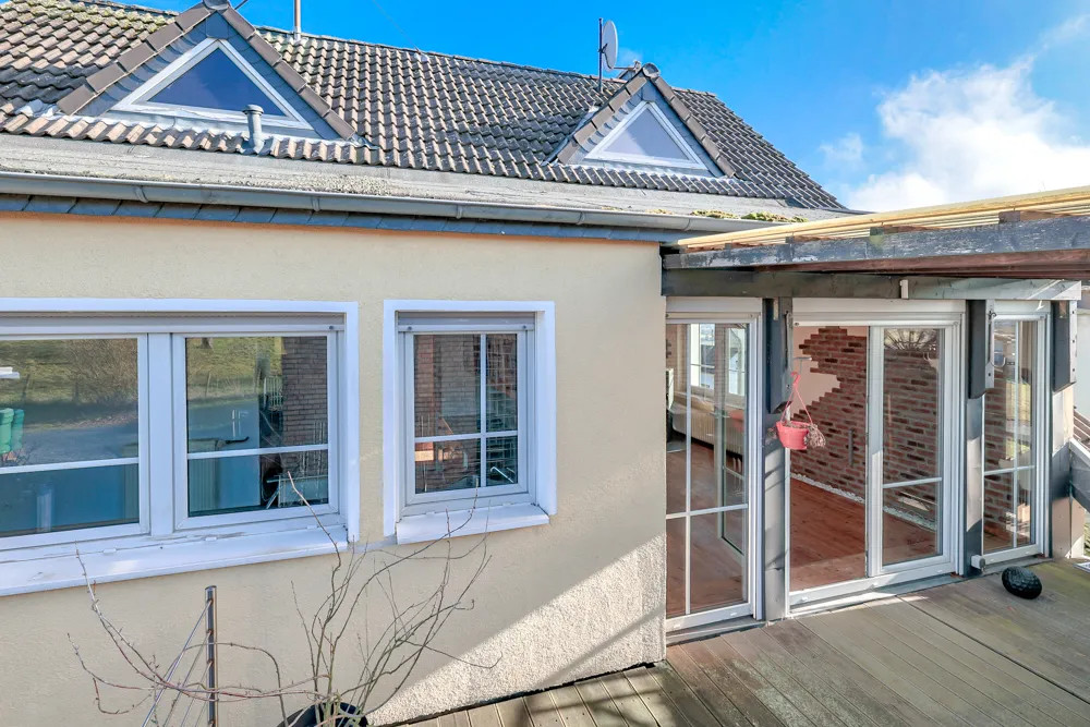 Ein besonderes Highlight ist der Garten mit integrierter Sauna sowie ein bestehendes Wegerecht oberhalb des Grundstücks, das einen direkten Zugang ins Grüne ermöglicht – ideal für Spaziergänge oder Hundehalter.