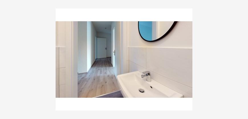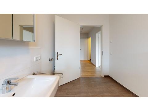 Der Waschmaschinenanschluss befindet sich in der Wohnung im Badezimmer.