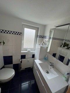 Diese gepflegte und helle Wohnung im EG rechts. mit großem Balkon zeichnet sich durch eine gehobene Ausstattung aus. Die Wohnung liegt in einer gepflegten kleinen Wohnlage (6 Parteien). Parkmöglichkeiten gibt es auf einem Stellplatz am Haus, (ggf. Garage) sowie an der wenig befahrenen Straße/Sackgasse. Die Wohnung besteht aus 3 Zimmern - große offene Wohnküche, Bäder mit Tageslicht und Badewanne - sowie einem Gäste-WC. Vom großen Balkon genießen Sie eine schöne Fernsicht mit Abendsonne. Der Garten steht jedem Mieter zur Verfügung. Ein aktueller Energieausweis liegt zur Besichtigung vor. Zur Verfügung steht Ihnen außerdem ein großer Kellerraum + Fahrradkeller.