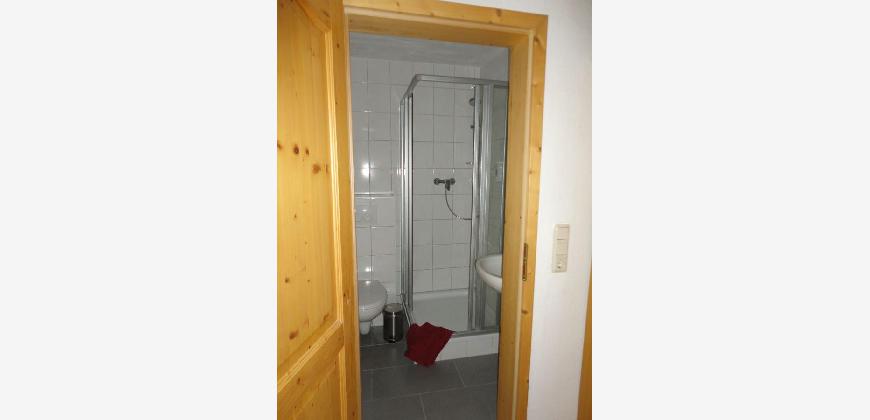 Jedes der Zimmer hat seine eigene Nasszelle (WC, Dusche, Waschbecken, Fön, Hocker, Wandregal, Duschgel-Spender, Kosmetiktücher).