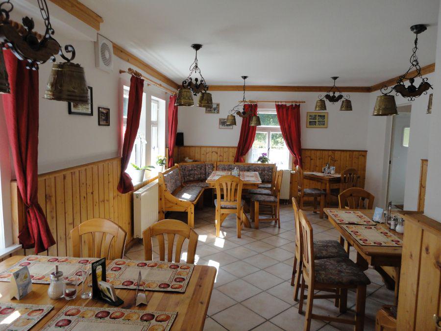 Das Restaurant orientiert sich ebenfalls in seiner Einrichtung am historischem (denkmalgeschützten) Gesamtbild des Hauses und lässt sich auch am treffendsten mit den Worten rustikal & gemütlich beschreiben (siehe Bilder).