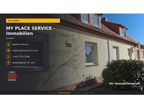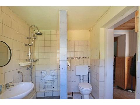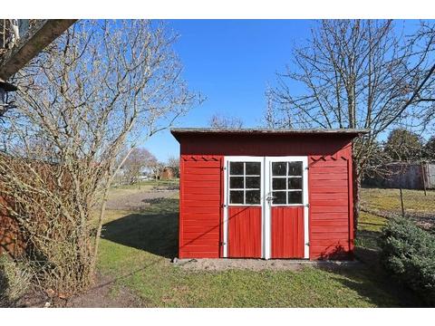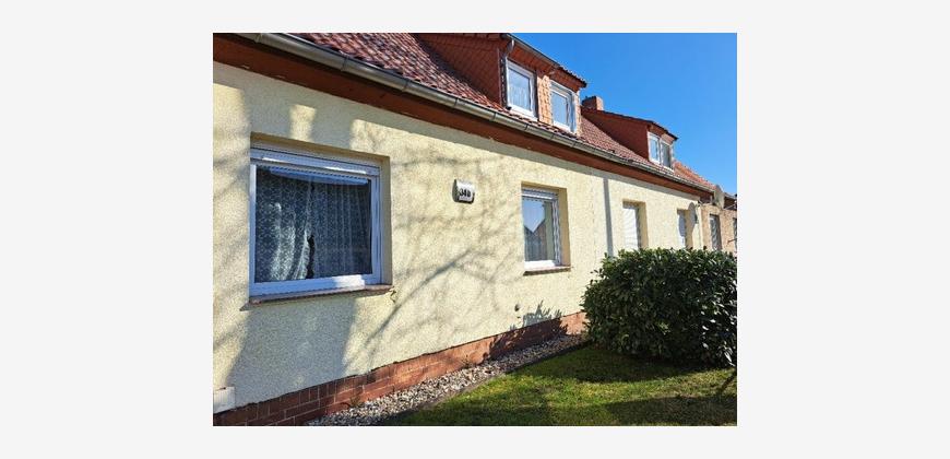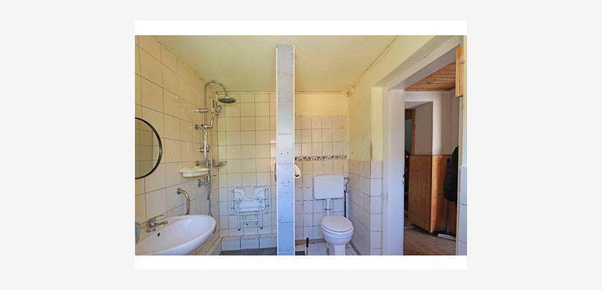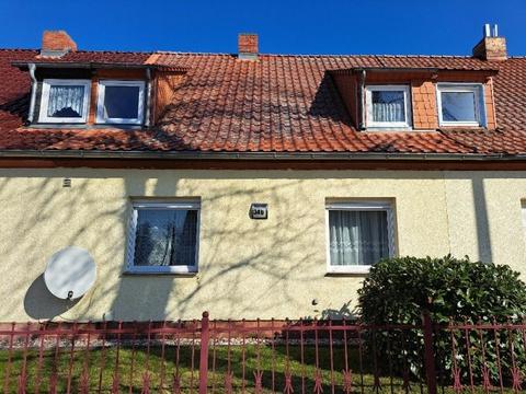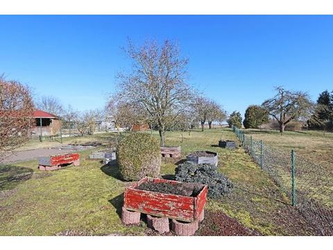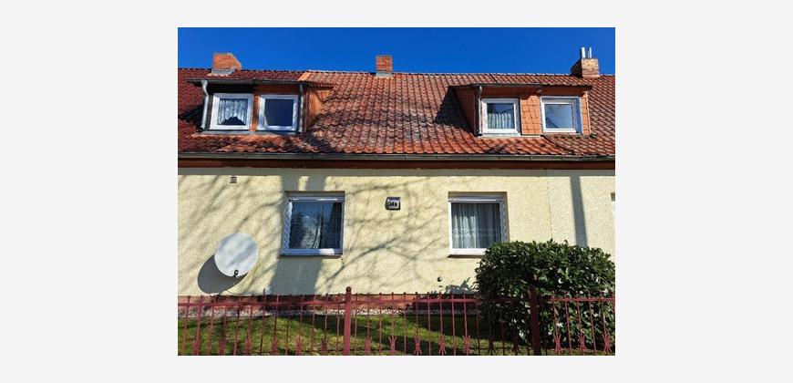 Das hier vorgestellte Reihenmittelhaus wurde 1934 in massiver Bauweise errichtet und fertiggestellt. Die Größe und Lage des Grundstücks weist ein Alleinstellungsmerkmal auf, für eine Reihenhaussiedlung ist das Grundstück sehr groß. Gebaut wurde zur Straße liegend, entsprechend wird das Grundstück optimal genutzt. Das Innere der Immobilie ist zweckmäßige. Der Dachboden ist noch nicht ausgebaut. Das Haus wurde 2006 saniert; das heißt das Dach, die Fenster mit Jalousien und die Heizung wurden ersetzt. Als Besonderheit kann man hier die zwei Heizsysteme nennen, es kann mit Gas oder mit Holz und Kohle geheizt werden. Weitere Nutzflächen bieten eine Stallung, der Keller, die Garage, und ein Gartenhaus.
