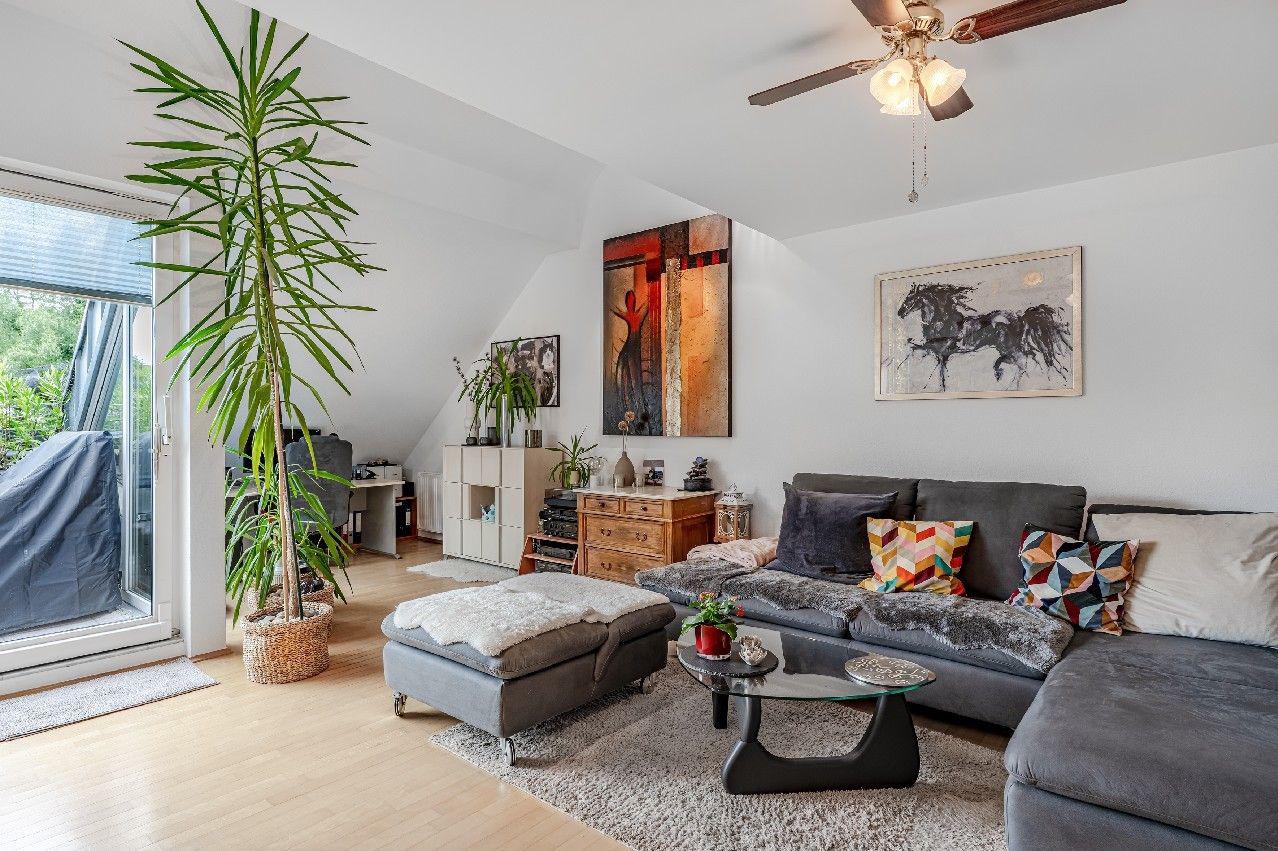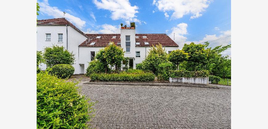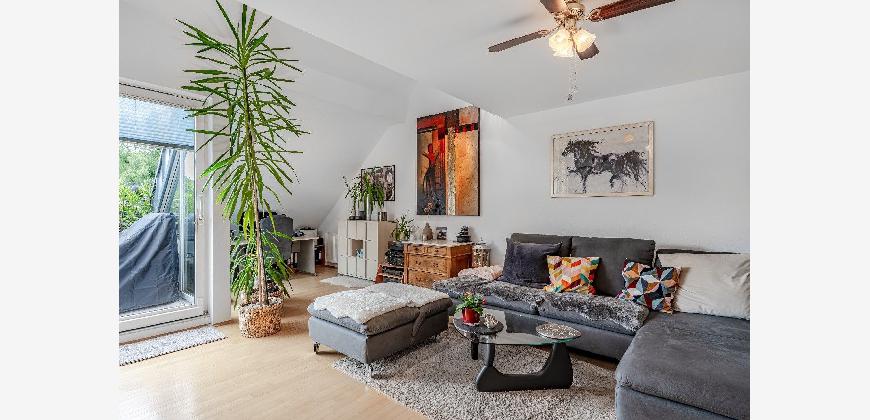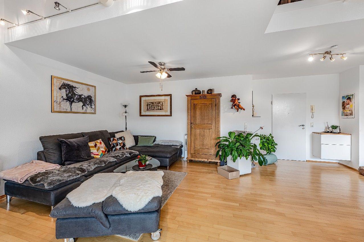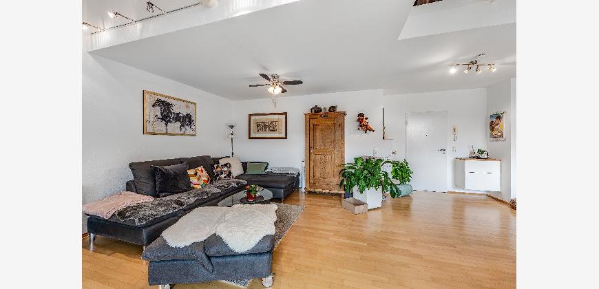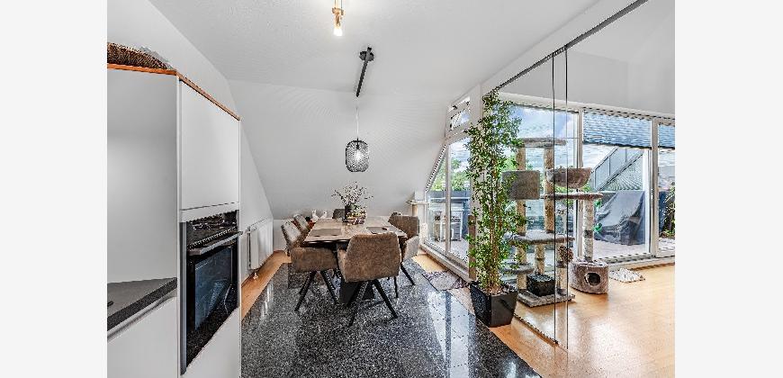 Diese Maisonette-Wohnung erstreckt sich über das 2. Obergeschoss sowie das ausgebaute Galeriegeschoss einer gepflegten Wohnanlage am Rande eines Naturschutzgebiets. Mit einer Wohnfläche von ca. 107 m², zwei Balkonen, einer beeindruckenden Raumhöhe durch die offene Galerie und einer hochwertigen Ausstattung bietet diese Immobilie außergewöhnlichen Wohnkomfort sowohl für Kapitalanleger als auch für Eigennutzer mit Anspruch. Der Zugang zur Wohnung erfolgt über das 2. Obergeschoss. Hier eröffnet sich ein großzügiger Wohnbereich mit Zugang zum großen Balkon in Westausrichtung. Über ein großes Schiebetürelement gelangen Sie ins Freie. Die Küche und der Essplatz sind durch eine elegante Glasschiebetür vom Wohnraum separiert. Die moderne Einbauküche wurde erst im vergangenen Jahr von