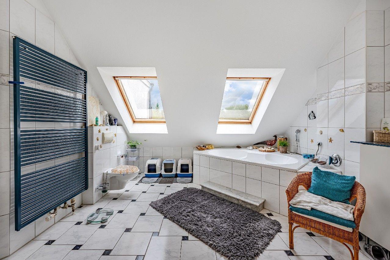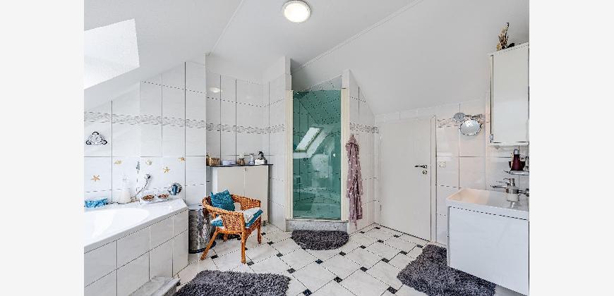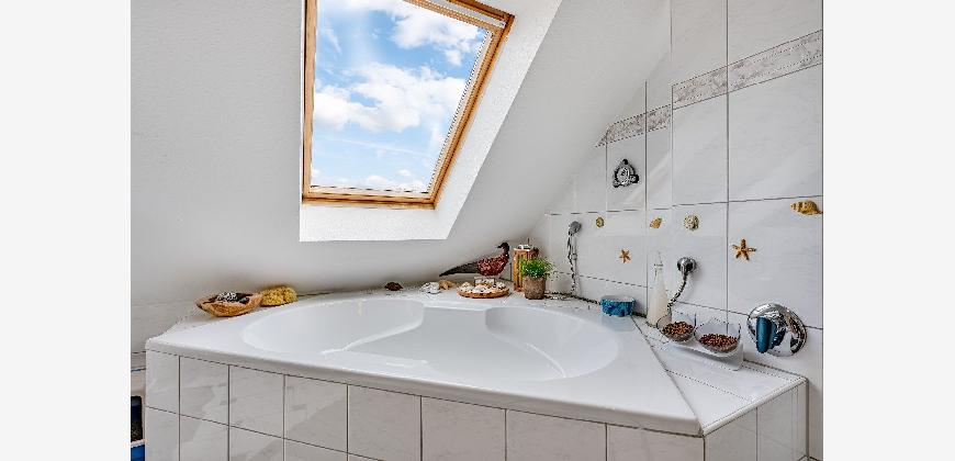 Tageslichtbad mit Eckwanne und Dusche