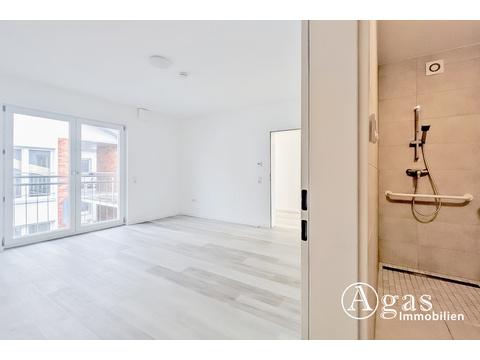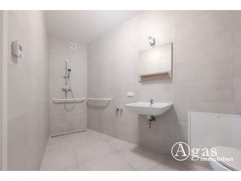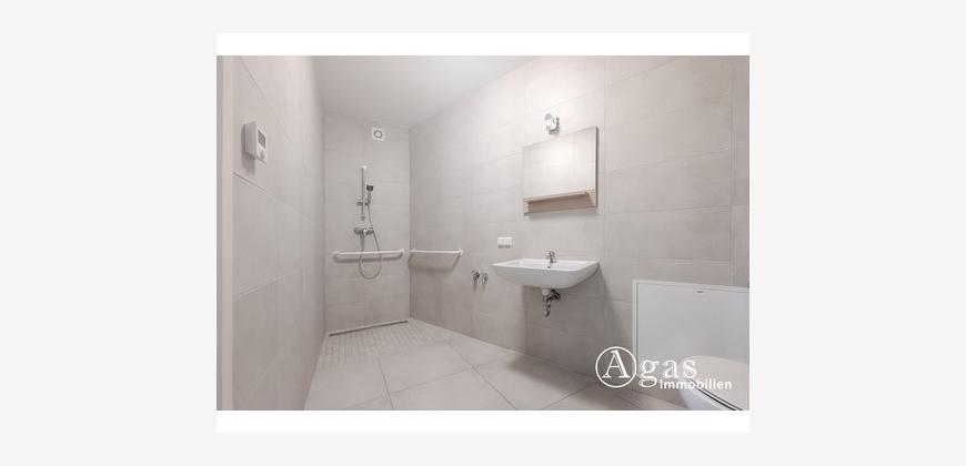 Auf einer Wohnfläche von ca. 44,77 m² (Gemeinschaftsbereich ist anteilig eingerechnet) erwartet Sie ein Raumkonzept, das sorglosen Wohnkomfort in einem Zimmer bietet. Der offene Grundriss und die großzügigen Fenster sorgen für eine helle und freundliche Atmosphäre. Das moderne Badezimmer verfügt über eine ebenerdige Dusche, rutschfeste Bodenbeläge sowie bereits installierte Haltegriffe, die Ihre Sicherheit gewährleisten.