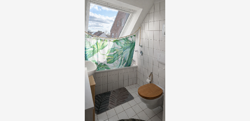 Ein besonderes Highlight ist der Balkon mit schönem Ausblick, der zusätzlichen Wohnraum im Freien schafft und sich ideal zum Entspannen eignet. Das Tageslichtbad ist mit einer Badewanne ausgestattet und wirkt durch seine klare Gestaltung zeitlos und gepflegt.