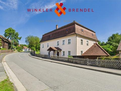 Dieses denkmalgeschützte Forsthaus ist ein Ort voller Charme und Herz. Das wunderschöne Anwesen bietet zwei Wohneinheiten und wurde mit Liebe zum Detail laufend gepflegt und baulich erhalten. Das Haus besticht durch seine massiven Sandsteinwände und sorgt damit für ein angenehmes Raumklima. Die Haupteinheit mit rund 159 m² Wohnfläche ist auf das Erd- und Obergeschoss verteilt. Im Erdgeschoss befinden sich Wohnzimmer, Küche, WC, Hauswirtschafts- und Abstellraum sowie der Gewölbekeller und die Heizung. Im Obergeschoss sind insgesamt drei Schlafzimmer, ein Büro und ein großes Bad. Die Einliegerwohnung ist ebenfalls im Obergeschoss mit ca. 54 m² Wohnfläche bietet viel Privatsphäre. Sie umfasst Wohn- und Schlafzimmer, Küche, innenliegendes Bad und Abstellraum. Über einen weiteren Treppenaufgang gelangt man in den zweistöckigen Dachboden. Für den Ausbau zu Wohnzwecken ist eine Abstimmung mit dem Denkmalsamt notwendig, aber in Aussicht gestellt.